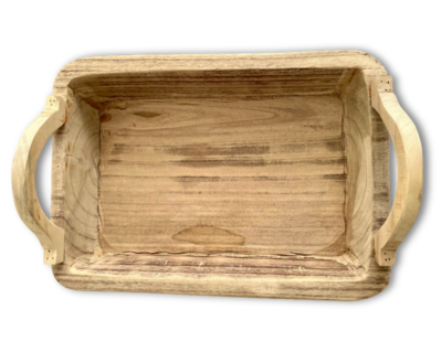 CAJA DE MADERA, 25 X 15 X 11 CMS. INCLUYE LOGO GRABADO, FOLLAJE DE PAPEL O MADERA TRITURADA